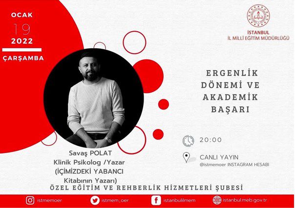 Sevgili dostlar, bu akşam meslek hayatımda önemli bir yere sahip olan daha önce birlikte görev yaptığımız bir çok mesai arkadaşımın, dostumun bulunduğu İstanbul Milli Eğitim Müdürlüğü’nün davetlisiyim. Ergenlik Dönemini konuşacağımız bu etkinliğe ebeveynleri, öğrencileri, öğretmenleri ve ilgi duyanları bekleriz. @istanbulilmem @istmemoer