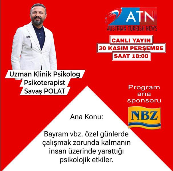 Sevgili takipçilerim perşembe akşamı yurtdışında yaşayan Türkler ile sevgili Sinan Yücel ile canlı yayında “ Özel günlerde çalışmanın insanların psikolojileri üzerindeki etkisini” konuşuyor olacağız. Bekleriz.